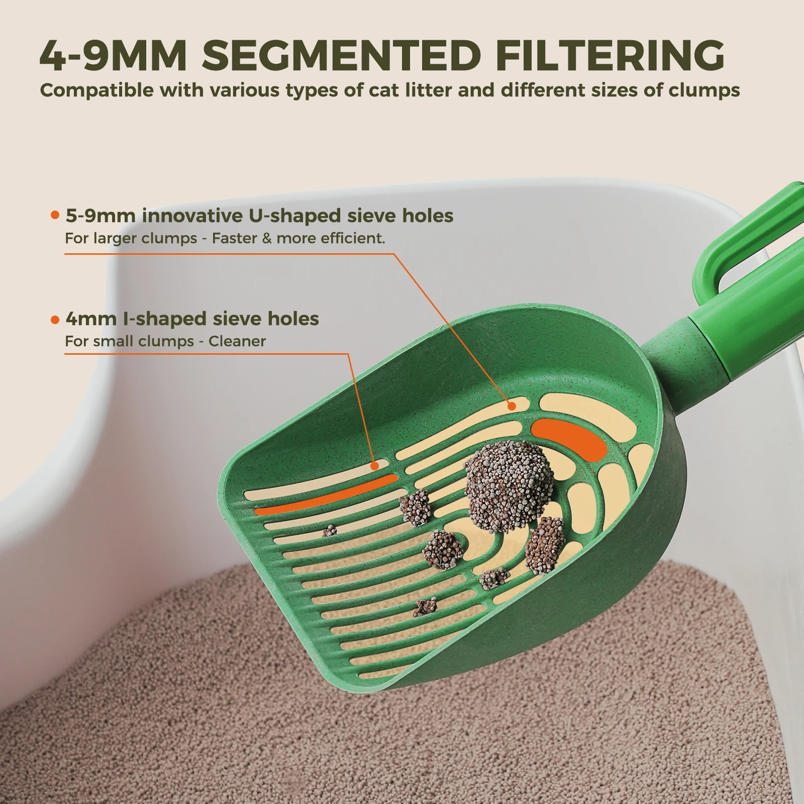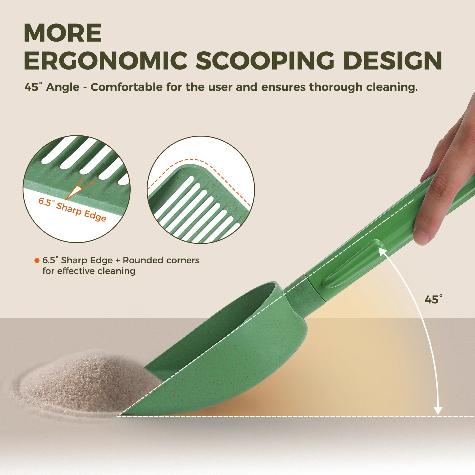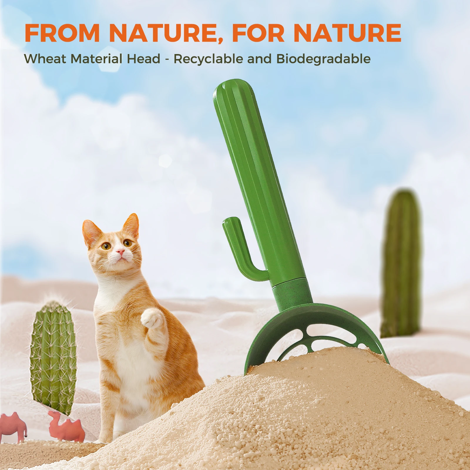 This Cactus Cat Litter Scooper works with most standard litter boxes and all common litter types. The comfortable handle helps reduce hand strain during daily cleaning, and the sturdy materials are easy to rinse and wipe dry after use. The cactus holder also helps contain any leftover bits of litter that might fall from the scoop.