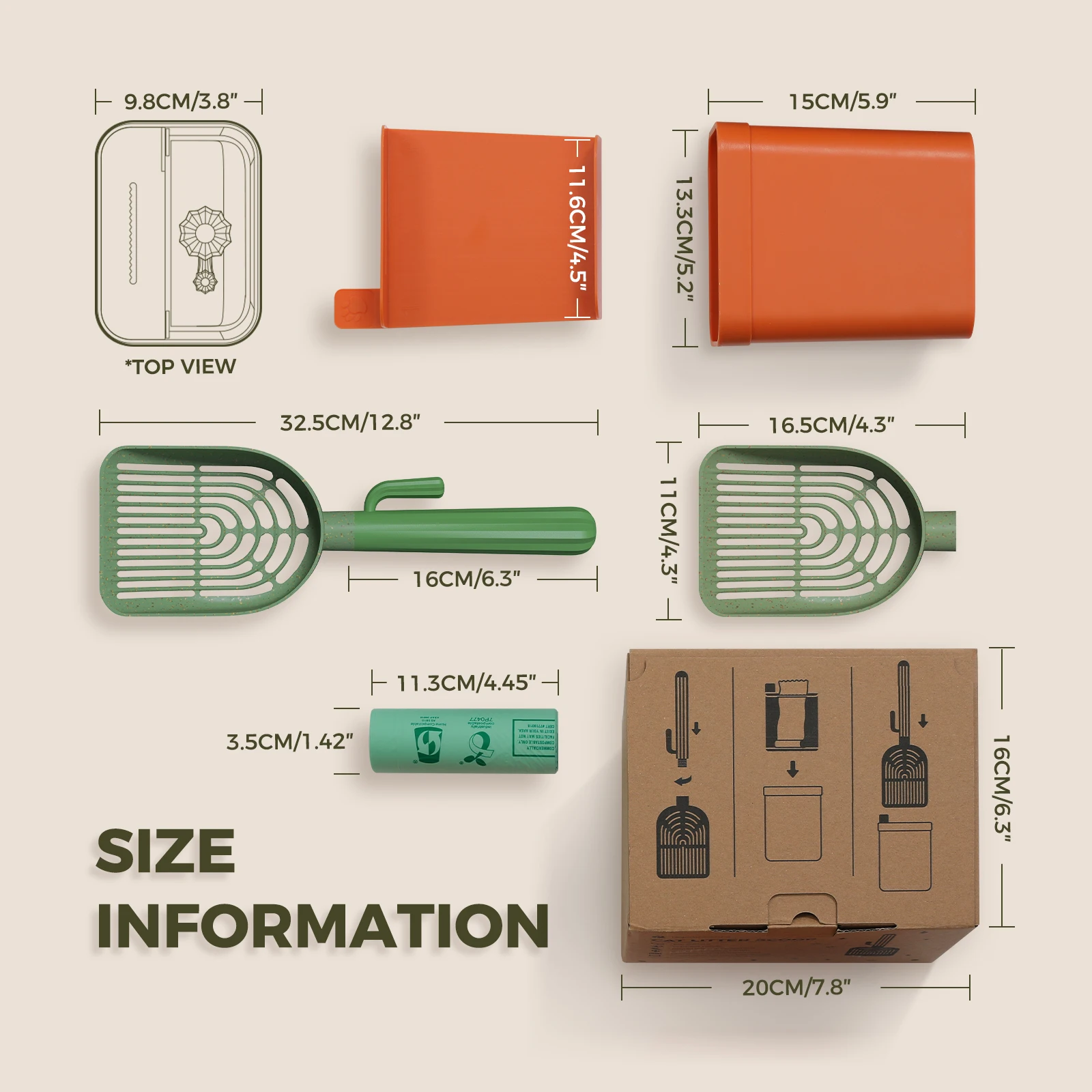 Cactus Cat Litter Scooper with Holder and Bags